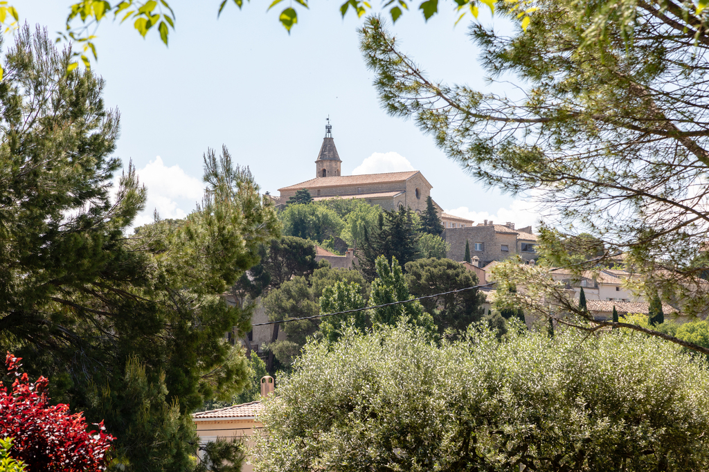 La vue est magnifique entre le Mont-Ventoux et le village de Crillon.